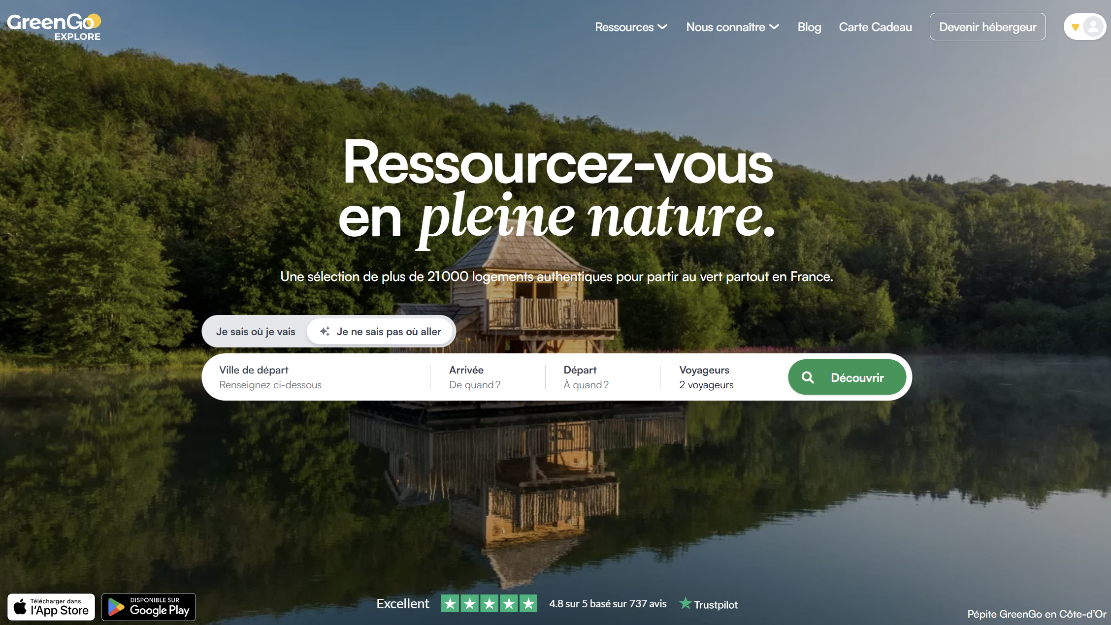 En France, la plateforme GreenGo propose plus de 21 000 logements authentiques partout sur le territoire. Une sĂ©lection rigoureuse qui permet de sâĂ©vader quelques jours, loin du stress professionnel, dans un hĂ©bergement respectueux de lâenvironnement et des hĂŽtes.